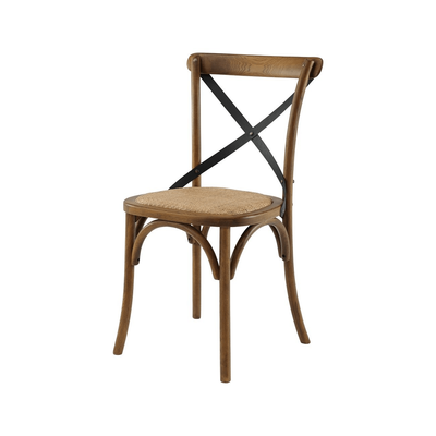 OAK AND RATTAN DINING CHAIR - METAL CROSSBACK