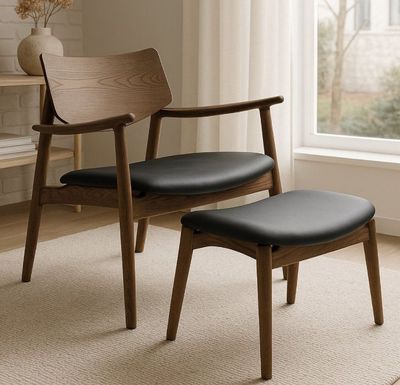 ALTA FOOTSTOOL -SOLID OAK/WALNUT WITH BLACK LEATHER