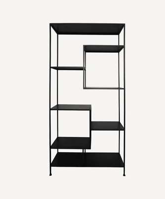 Versatile bookshelf with open staggered shelving, great for decorating and displaying beautiful décor objects in the home. Equally suitable for magazines and books. Made from solid black iron.