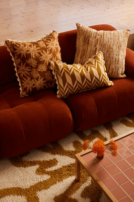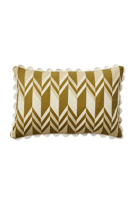 Energise your space with the bold rhythm of the Channel Citron cushion, where vintage graphic prints meet contemporary style. Featuring a dynamic diagonal repeat, this design plays with tonal variations of golden tones, creating an eye-catching sense of movement and depth. A perfect fusion of retro charm and modern sophistication, this citron yellow geometric cushion adds warmth and character to any setting.
