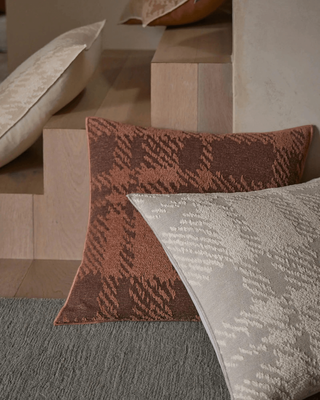 The Sienne Cushion showcases an oversized check design with texture that enhances its sophisticated appeal. Made from a durable blend of 42% cotton, 34% recycled polyester, 15% linen, and 9% viscose, it offers both luxury and sustainability.