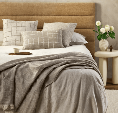 In a nostalgic nod to traditional textiles, the earthen tones of the Johnson evoke the essence of dry summer landscapes and hazy afternoon sun. Featuring a ragged grid design in finely woven reverse fabric, the Johnson cushion’s lumbar shape and ochre palette come together for an inviting, comforting aesthetic. Style with complementing Harrison-Ochre, Flaxmill-Doeskin and Fenugreek linen cushions.