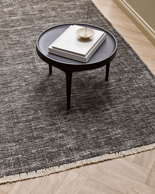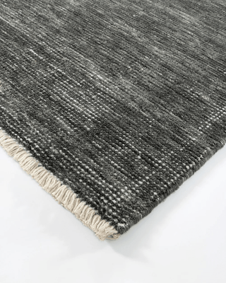 Handcrafted from pure New Zealand wool, the Corbett rug’s lightly distressed design and soft charcoal tone are perfect for creating contemporary living spaces. Featuring a short fringe and minimal pile height, the vintage character adds ambience and mottled texture to living spaces.