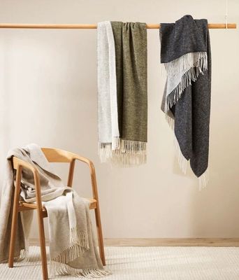 Beautifully soft and lightweight, the Casa adds an unparallel sense of timeless luxury to a space. Woven in a two-tone, reversible design, the merino composition feels inviting and cocoon-like, while the warm charcoal tone adds a gentle contrast to your space. Each throw is finished with a natural-toned tasselled edge.