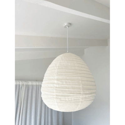 White Linen Pear Lantern pendant over a collapsible bamboo structure. The linen is attached with raw edges to give a fringe effect on this Pear shaped 60cm shade. Our pear lantern shades come with a metal adaptor ring to allow them to easily hang on your existing bulb holder.