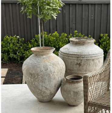 These traditional water pots were used to catch rain from the roofs for family life and storage for the village. These pots have been passed down from generation to generation with each piece being unique in colour, design and finish.