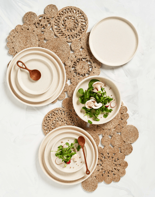 A unique cream clay with an oatmeal fleck and modern profile, make this hospitality grade collection perfect for showing-off your culinary creations. Stacking is a breeze. Microwave and dishwasher safe.