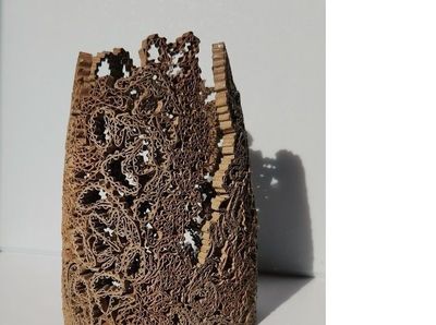 Original Textured Corrugated Cardboard Artwork with Light | Contemporary Wall Sculpture by Lucie Anderson