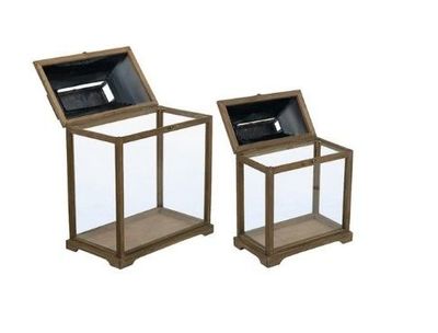 VINTAGE GLASS AND IRON LANTERN - RECTANGLE