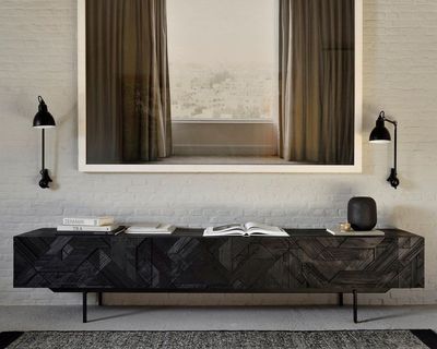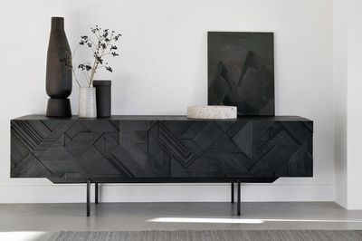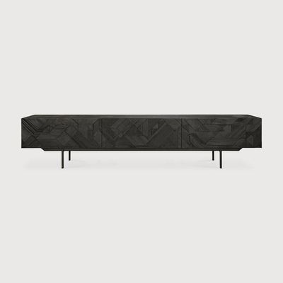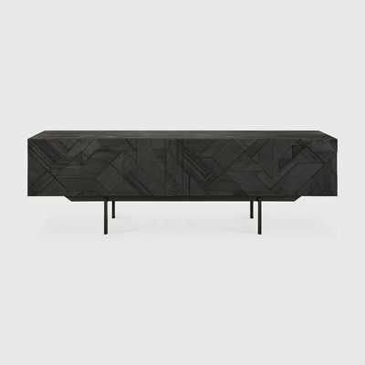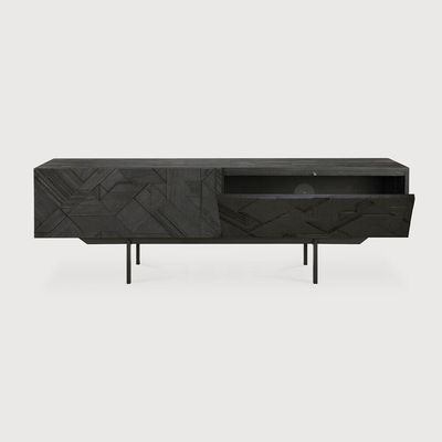 The Ethnicraft Teak Graphic TV cupboard features a striking dynamic surface that makes it a statement piece in any living space.