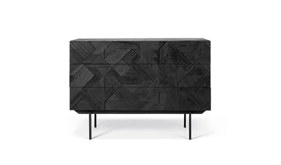 In his quest to add movement to the surface, designer Alain van Havre started layering and combining triangular shapes. Before he knew it he had created a visually enticing composition out of teak and the Graphic design was born.
