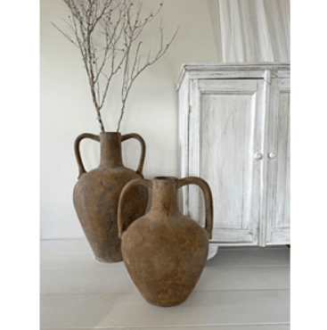 Inspired by the traditional Grecian vases of the past these urns bring a classic style to the home. The finish is natural and chalky, place dried flowers or leave as a statement piece in an entrance way or on a table.