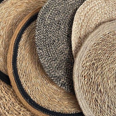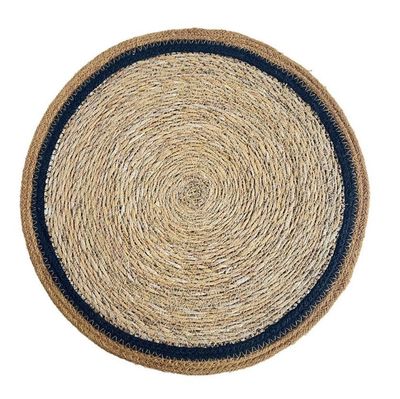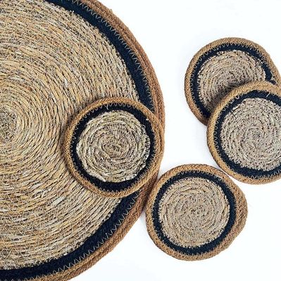 Handcrafted seagrass natural round placemat with jute border of cumin/black D37 X H.5CM. Colour and construction details may vary