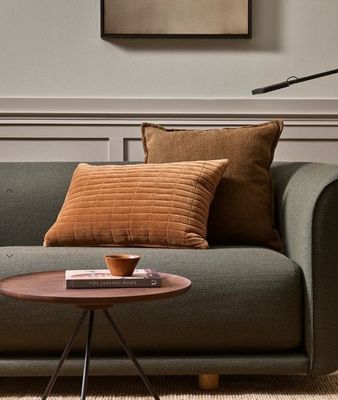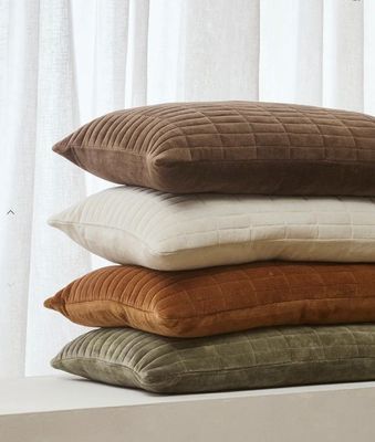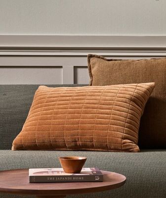 Rich, tactile and refined, the Turner lumbar cushion brings depth and quiet luxury to interior spaces. Quilted in a subtle brickwork design, the plush cotton velvet catches the light to reveal gentle texture and tonal variation. Crafted in a warm tobacco tone, it adds sensory and visual depth to both modern and classic interiors.