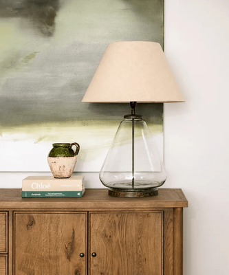 Style Description:This substantial glass Lampbase has light, graceful feel which brings a contempary feel without overwhelming the room. Set to become a French Country favourite this season pair with a classic linen shade.