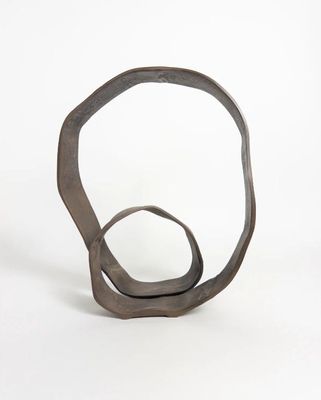 An abstract twist in antique copper — this sculptural piece makes a bold focal point, perfect for shelves, consoles, or layered with other décor.