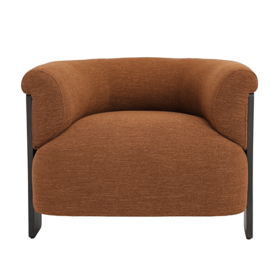 With its curved frame and low-profile seat, the Stella Occasional Chair makes an impression from every angle. Upholstered in rich copper brown with subtle horizontal channelling, it rests on three dark ash veneer legs – a warm, sculptural accent that adds depth and character to any space.