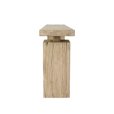 Crafted from reclaimed elm, the natural finish allows grain variation, knots, splits, and gnarly markings to remain clearly visible. A waxed surface softens the timber and enhances its warmth, keeping the material honest and tactile without masking its character.