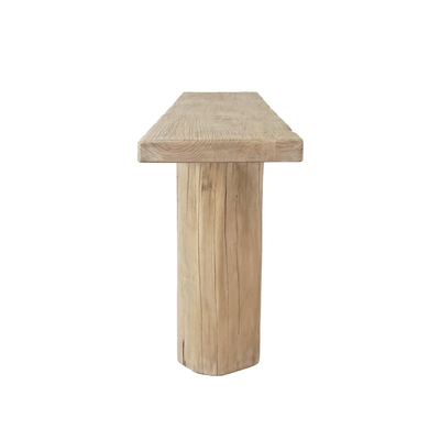 Crafted from reclaimed elm, the surface shows grain movement, knots and gnarly markings, finished in wax to enhance texture without shine.