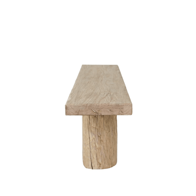 The Artisan Round Leg Bench pairs a thick, linear seat with cylindrical legs for a form that feels both solid and understated. The proportions are simple and deliberate, allowing the timber to remain the focal point.