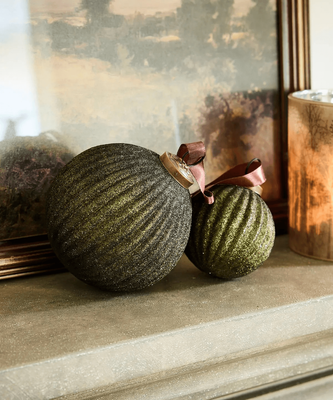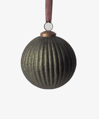 Bring depth and a subtle sparkle to your Christmas décor with this glimmering dark green bauble. Finished with a velvet hanging ribbon, it brings depth and elegance to festive styling.