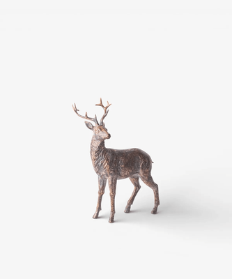 Sculptural and striking, the Sentinel Reindeer Collection captures the quiet beauty of winter. Crafted from resin with a rich copper brown finish, the range includes mini hanging, sitting, and standing reindeer in a variety of sizes.