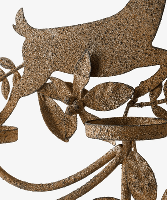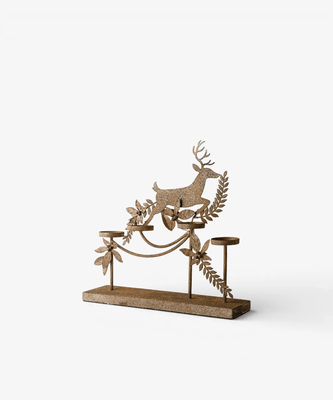 This rustic Yuletide candleholder brings a woodland feel to your festive styling. Perfect for a mantlepiece or dining table centrepiece the rust finish works perfectly with fresh green foliage and holds 4 candles.