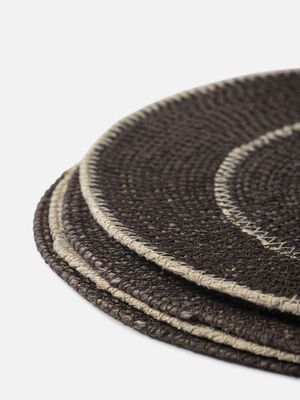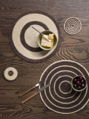 Bring natural charm to your table with the Agora woven placemats. The four-piece set showcases unique two-tone circular designs, each with playful variations in width and spacing.