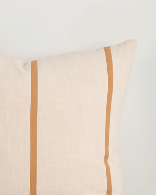 Balanced colour is captured in the striking yet restrained design of the Otis cushion. Crafted from 100% cotton, applique caramel stripes cut across a neutral, oat toned base. Finished with a knife edge and a solid-colour reverse, Otis is a confident accent for both neutral and statement spaces.
