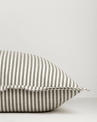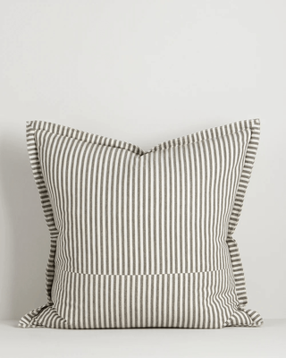 Create a relaxed, elegant interior with the classic Bengal stripe of the Rowan. A timeless pattern that complements both single-toned and statement pieces, offset lines and a generous double flange gives this piece a subtle design twist. Woven from cotton in an olive and ecru palette, this cushion is an effortless addition to a classically beautiful home.