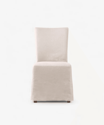 Simply elegant the Tara slip cover dining chair is made from a birch wood frame with a easy to care 100% linen upholstery.