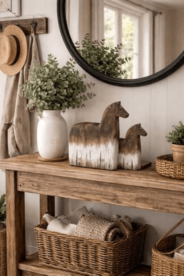 THE WOODEN HORSE IS A TIMELESS DECORATIVE ACCENT THAT CELEBRATES NATURAL MATERIALS AND ARTISAN CRAFTSMANSHIP. CARVED WITH CLEAN LINES AND A CLASSIC SILHOUETTE, THIS PIECE HIGHLIGHTS THE BEAUTY AND CHARACTER OF WOOD GRAIN. PERFECT FOR DISPLAY ON SHELVES, CONSOLES, OR SIDE TABLES, IT ADDS A WARM, RUSTIC YET REFINED TOUCH TO ANY INTERIOR.