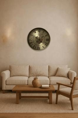 THE NOAH GEAR CLOCK IS A STRIKING STATEMENT PIECE THAT BLENDS INDUSTRIAL CHARACTER WITH TIMELESS DESIGN. FEATURING AN EXPOSED GEAR DETAIL WITHIN AN OVAL FRAME, THIS CLOCK ADDS DEPTH, MOVEMENT, AND VISUAL INTEREST TO YOUR WALL. THE SKELETON-STYLE DESIGN ALLOWS LIGHT TO PASS THROUGH, CREATING A BOLD YET AIRY LOOK. PERFECT FOR LIVING AREAS, HALLWAYS, OR OFFICES, THE OVAL GEAR CLOCK BRINGS A DISTINCTIVE, MECHANICAL EDGE TO BOTH CONTEMPORARY AND CLASSIC INTERIORS.