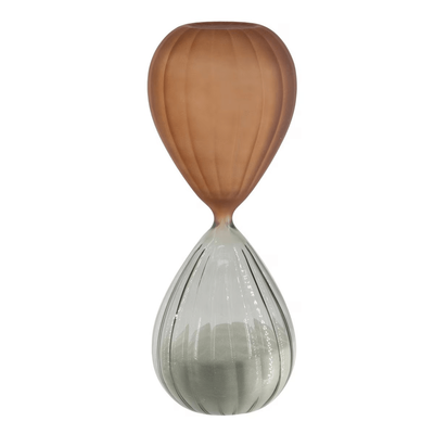 A STYLISH FUSION OF MODERN DESIGN AND TIMELESS FUNCTION, THIS HOURGLASS FEATURES A SLEEK COPPER FRAME WITH SOFT GREY SAND. PERFECT AS A DESKTOP ACCESSORY OR DECORATIVE PIECE, IT BRINGS ELEGANCE AND SOPHISTICATION TO ANY SPACE WHILE SUBTLY MARKING THE PASSAGE OF TIME.