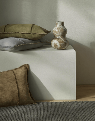 Quietly sophisticated, the Adela cushion is all about texture and thoughtful detail. Designed with intention, its subtle two-tone weave and organic textured surface offer a tactile finish that feels as good as it looks. The raw-edged fringe, featuring two interwoven colours, adds a refined point of interest without overpowering, bridging the gap between a plain and a textured design.