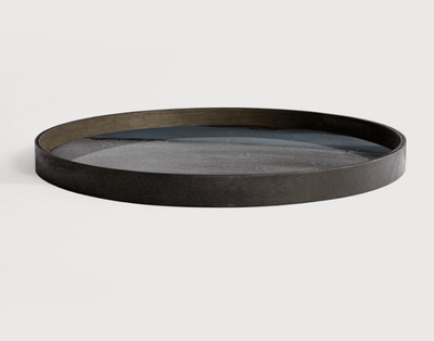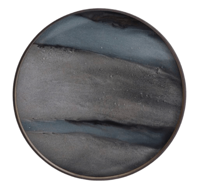 Reminiscent of a riverbed’s movement and reflective metallics, organic movement meets linear shapes in the Linear Flow tray collection. This Graphite Organic glass tray is inspired by the ink drawings at the beginning of the design process, when the pigment hits the glass it takes on a remarkable life of its own. Complementary effects are revealed in unexpected ways.