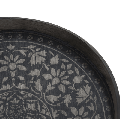 A subdued color palette meets captivating motifs inspired by nature and travel. This Black Marrakesh wooden tray experiments with the balance between rich patterns offset with muted tones, revealing the beauty behind the deceivingly ordinary subjects from which inspiration is drawn. In doing so, this collection captures the essence of timelessness.