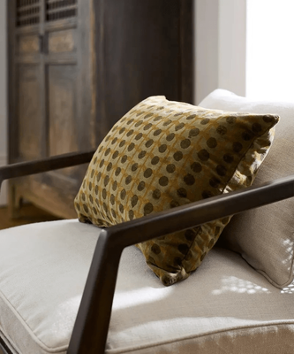 Style Description:This playful spot motif on velvet will add a touch of pattern and charm to your living space. The muted mustard and olive tones make this an easy addition to pair with existing cushions, linens and other tonal prints.