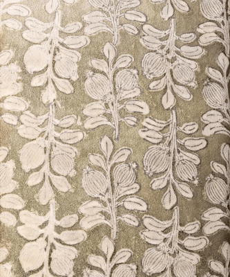 Style Description:Add a layer of artisanal charm to your living space with this handblock printed velvet cushion. Featuring a botanically inspired motif stamped by hand, each piece carries the subtle variations that make traditional craftsmanship so special. The rich olive velvet pairs beautifully with plain velvets, natural linens and other printed fabrics.